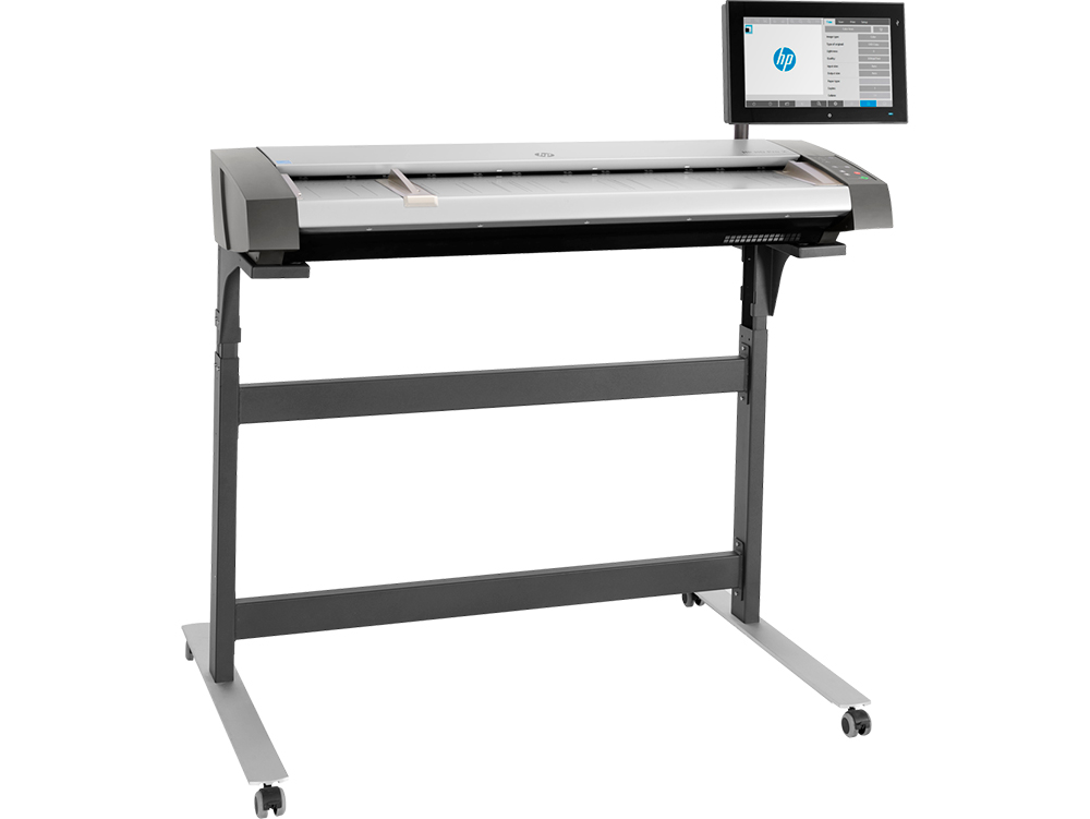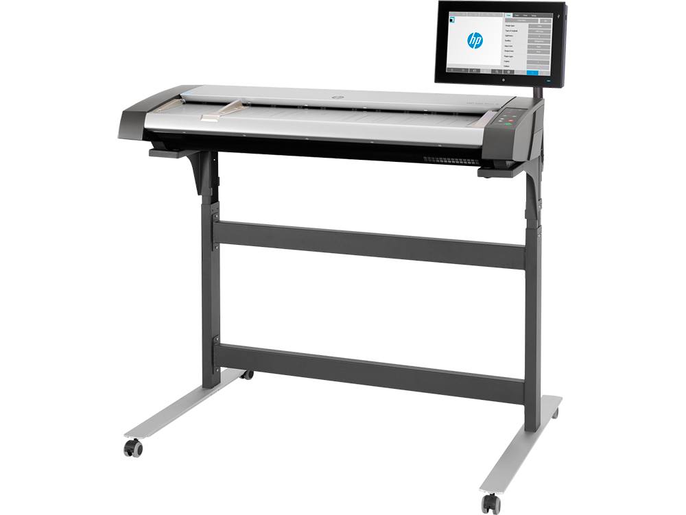- Регулируемая стойка, позволяющая разместить сканер над принтером HP Designjet или HP PageWide XL, оптимизируя рабочее пространство.